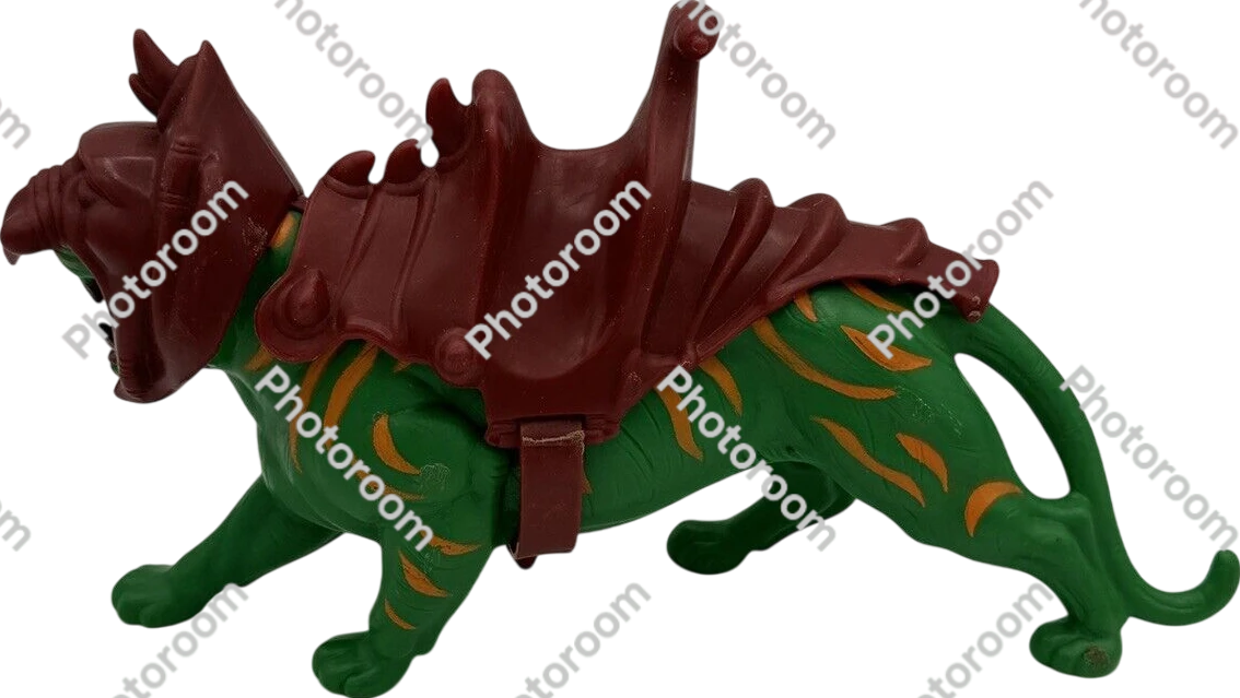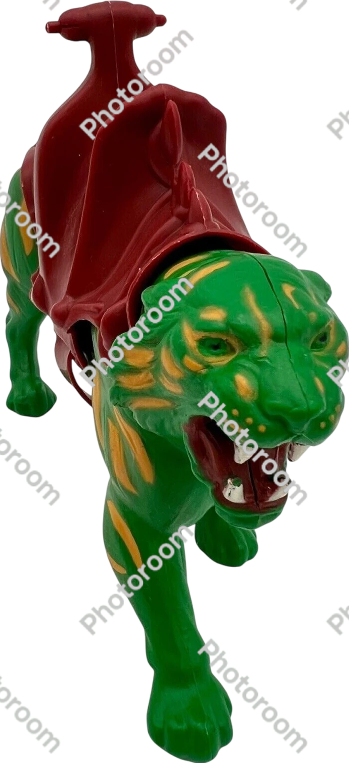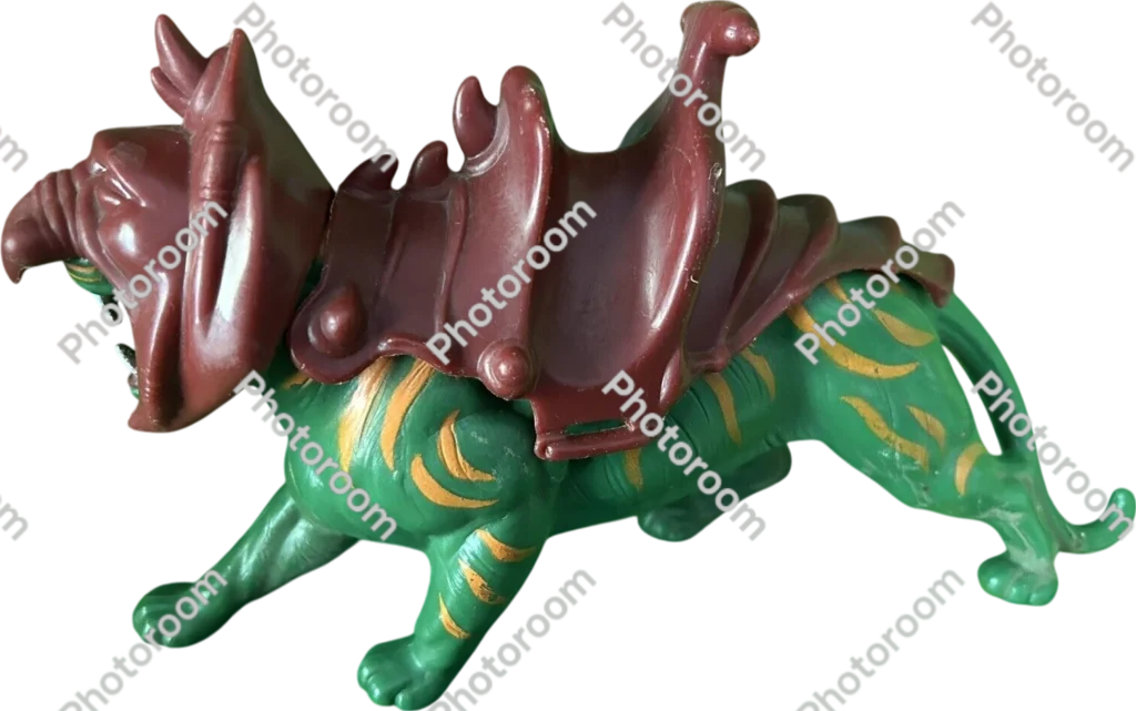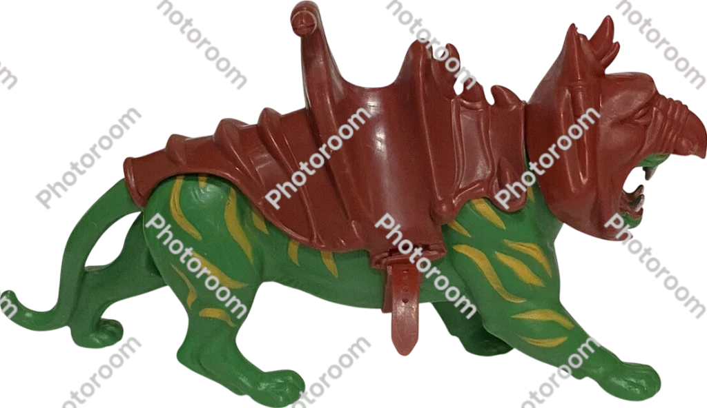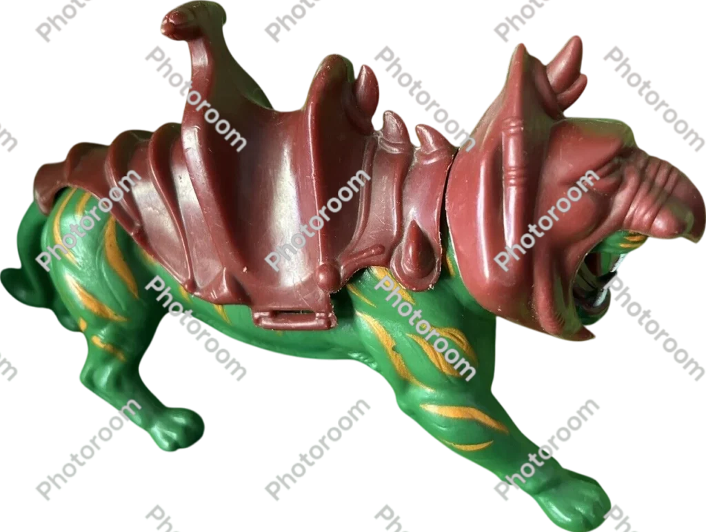 The Masters of the Universe Battle Cat was a vibrant green, armored tiger manufactured meticulously by Mattel and released in 1982—serving as the ferocious steed of He-Man, the iconic hero of the beloved franchise.