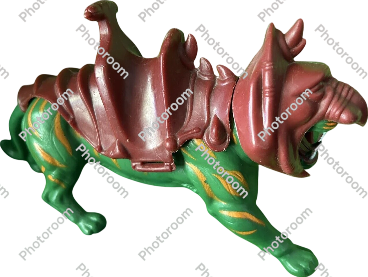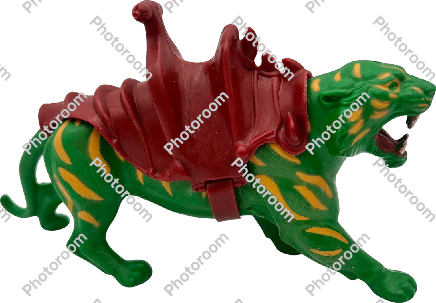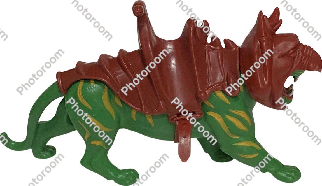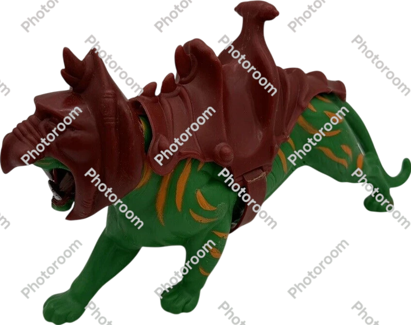 The Masters of the Universe Battle Cat was a vibrant green, armored tiger manufactured meticulously by Mattel and released in 1982—serving as the ferocious steed of He-Man, the iconic hero of the beloved franchise.