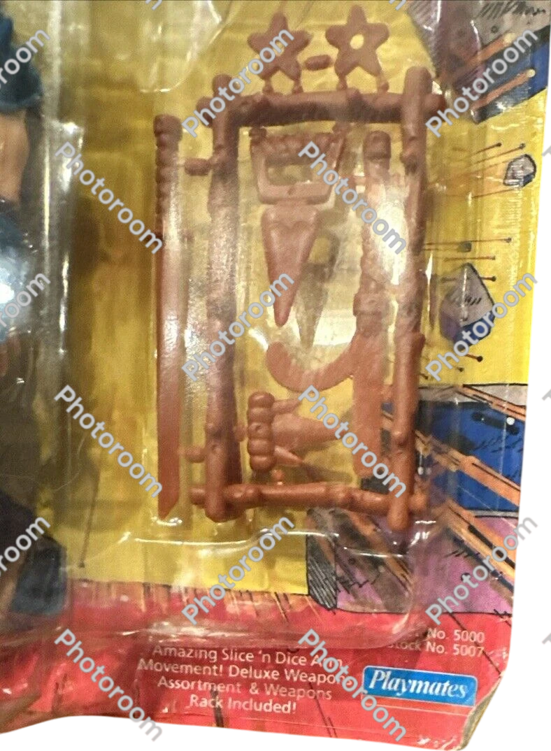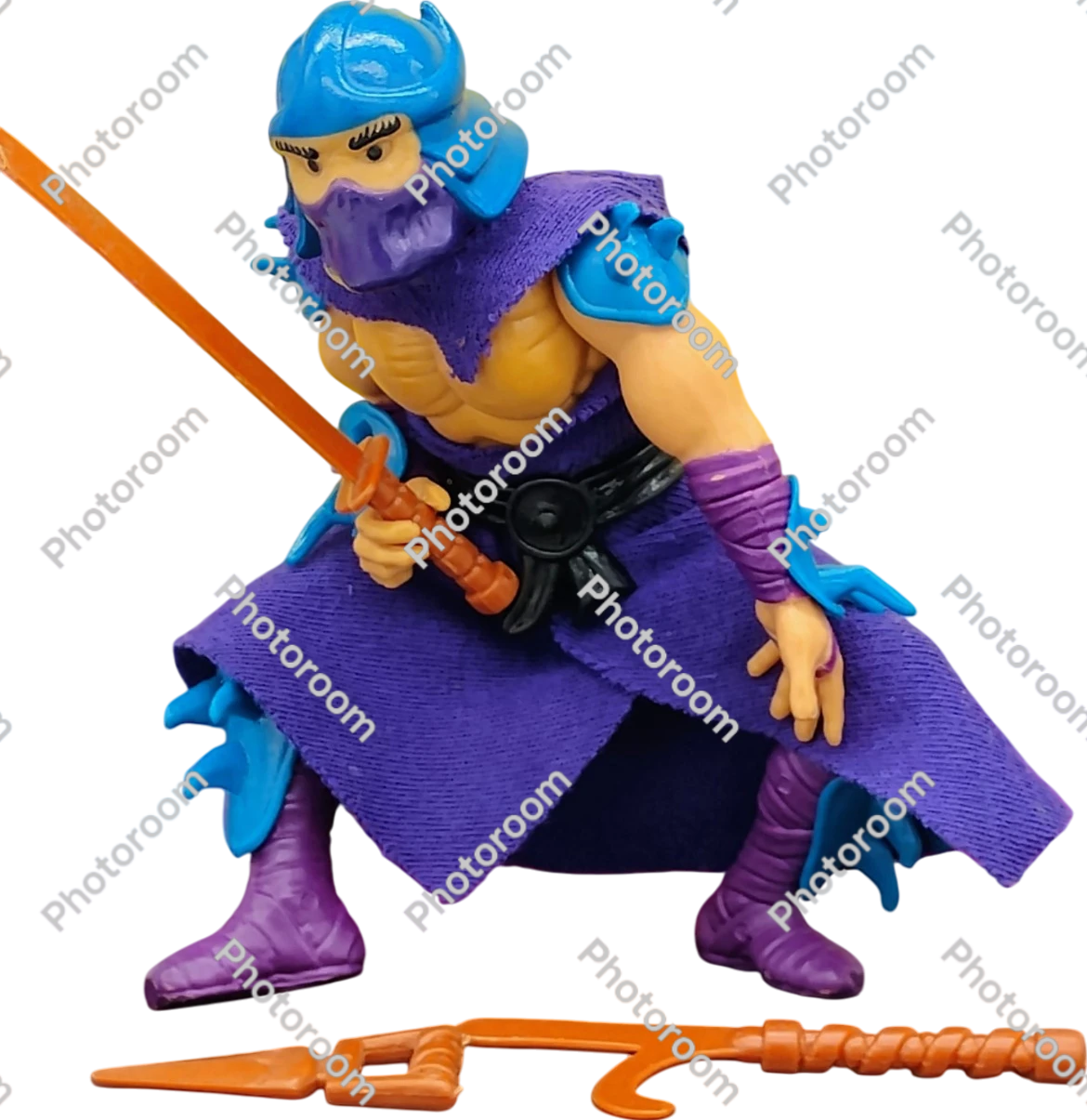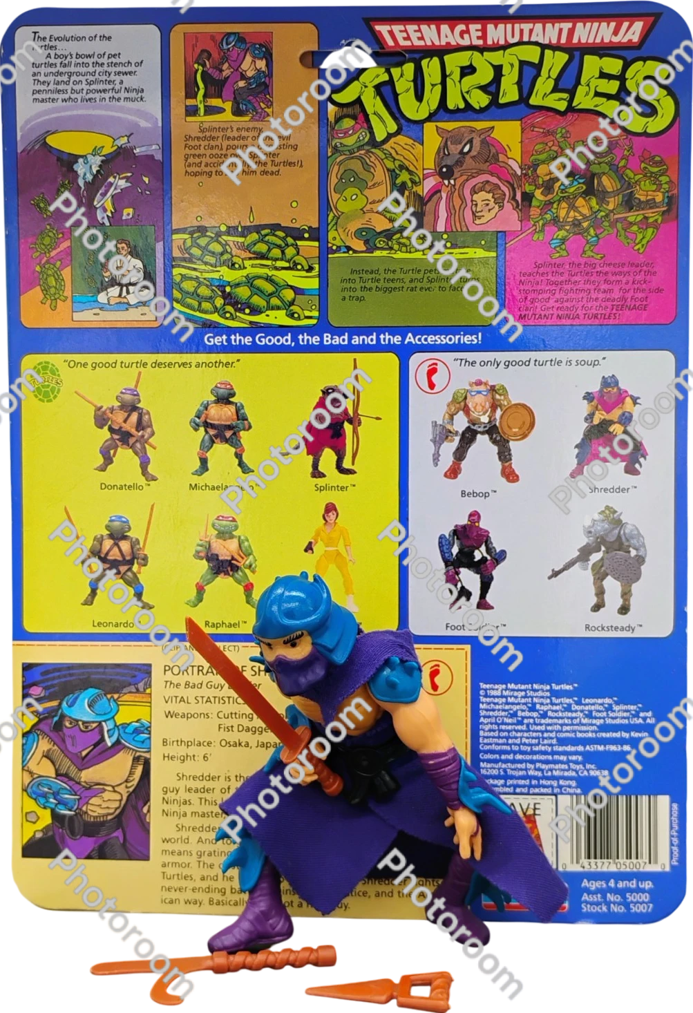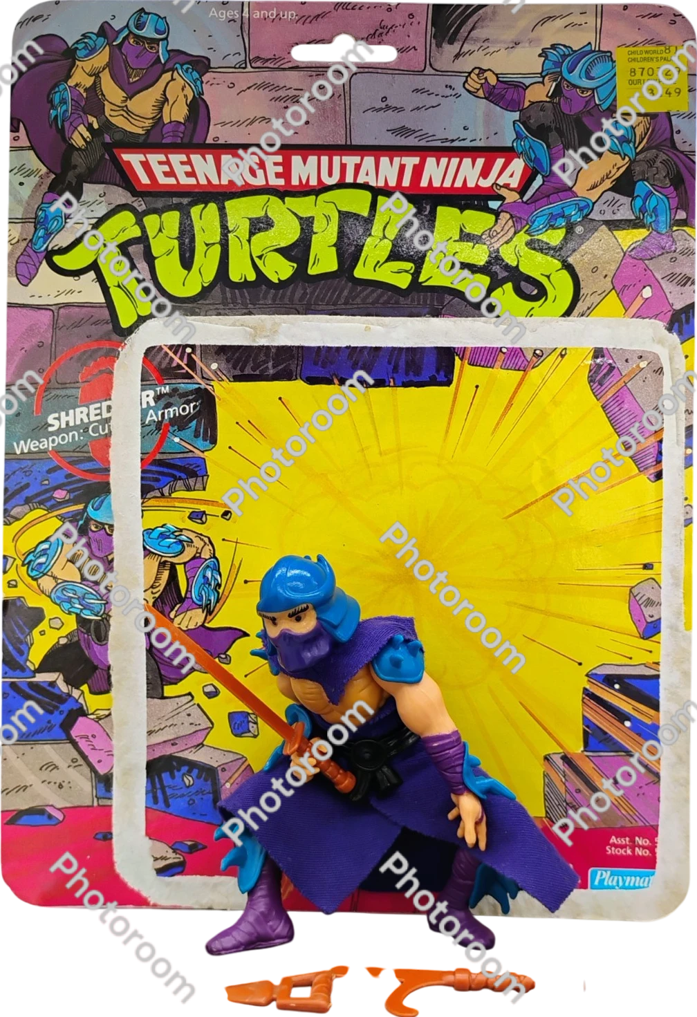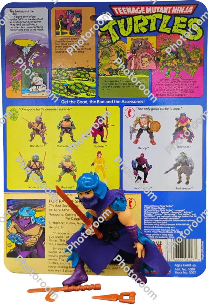 Shredder’s figure was teh for its distinct armor, helmet, and cape — the color scheme was primarily blue and purple, matching his representation in the animated series. This design choice made the figure easily recognizable to fans of the show — even if it wasn’t entirely accurate to the comic version.
