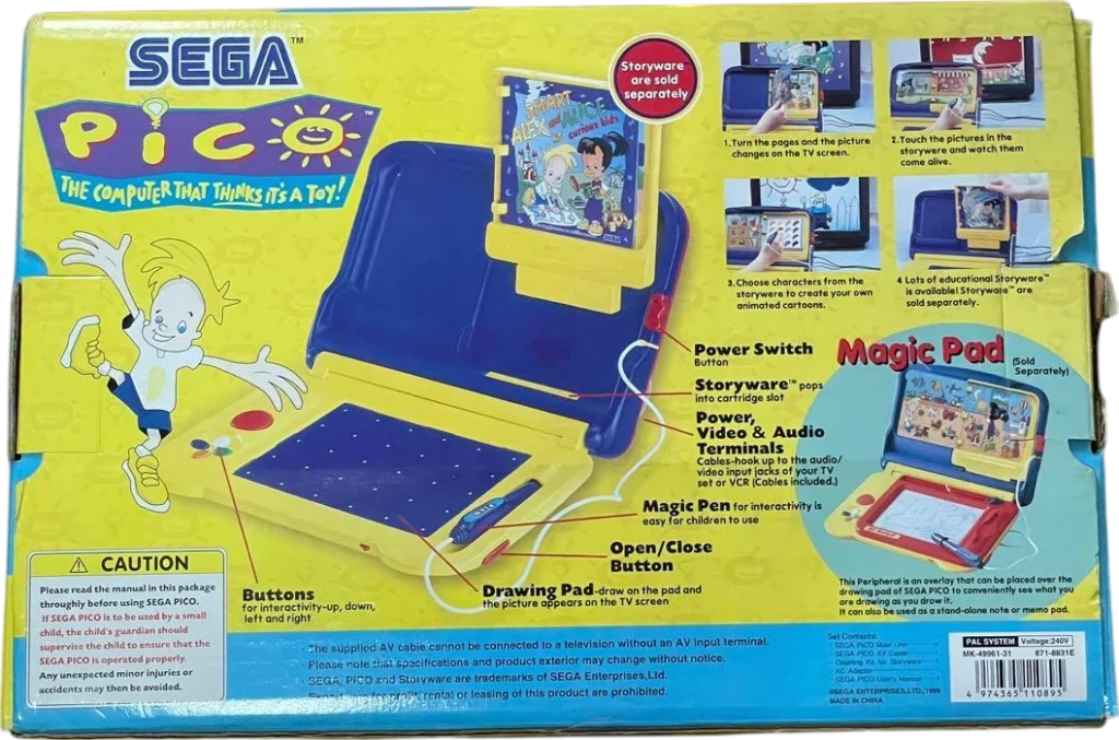 Looking back retrospectively, the Pico occupies a unique transitional space in the history of gaming—a product of Sega’s ambition to diversify during the 16-bit era, yet one that never quite managed to escape its reputation as a footnote when compared to the Genesis or Saturn. Its influence is more evident in later devices such as VTech’s V.Smile or LeapFrog’s LeapPad, which adopted similar book-cartridge formats for educational content, while the Pico’s emphasis on licensed characters to engage young users also became a defining characteristic of subsequent edutainment hardware, even if Sega’s own attempt to penetrate this market never achieved mainstream staying power beyond the borders of Japan.