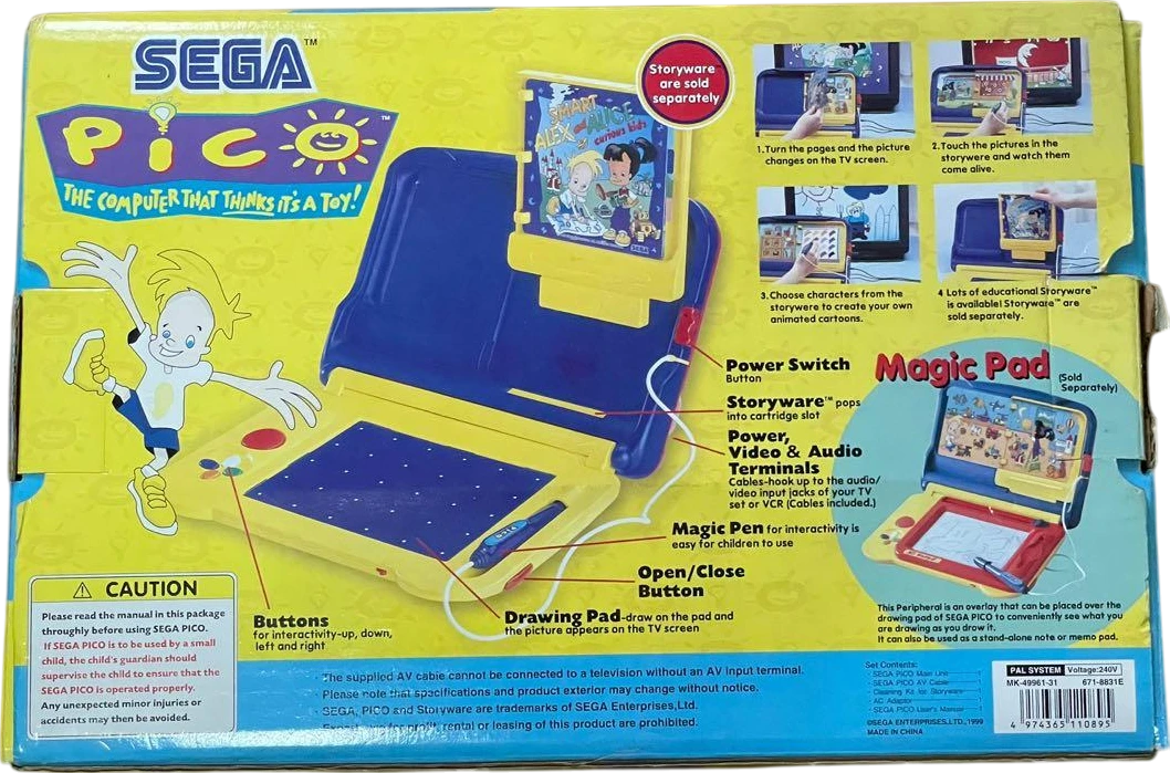 Unlike Sega’s more mainstream consoles, the Pico specifically targeted a demographic that was considered too young for the traditional gaming systems available at the time, positioning itself as an educational tool adorned with cartoonish aesthetics, featuring a clamshell design that closely resembled a chunky laptop, complete with a built-in touchpad and a stylus. Parents were marketed the innovative idea of “storyware”—cartridges that were shaped like spiral-bound picture books—that combined the physical act of page-turning with various on-screen activities, a feature intended to mimic the tactile experience associated with reading while simultaneously integrating fundamental math, language, and problem-solving challenges. The system made its initial debut in Japan, where it was able to find a steady audience, yet its release in Western markets in 1994 encountered a more competitive toy market that was skeptical of high-priced electronic learning devices.