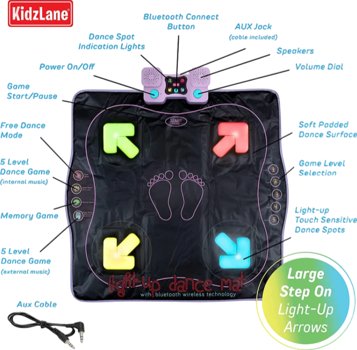 The Light-up Dance Mat was an interactive dance platform that featured a vinyl surface and was manufactured by a company known as Generic, which officially came into existence with this product in 2025.